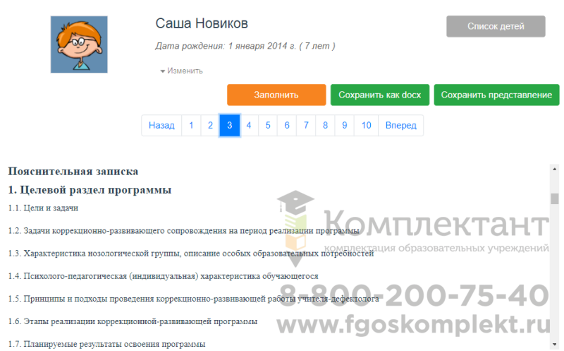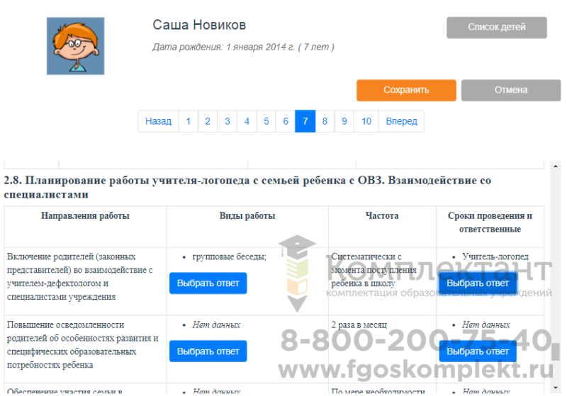 Конструктор гибкий, он учитывает множество факторов: с ребенком с ОВЗ какой нозологической группы работает учитель-дефектолог, какие занятия планирует, каких специалистов необходимо подключить к сопровождению работе и так далее.