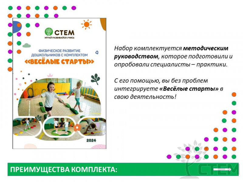 Физическое воспитание важный компонент образовательного процесса в дошкольном возрасте. Движение - фундамент для развития высших психических функций, моторики и речи. Комплект «Весёлые старты» помогает решать задачи образовательной области «Физическое развитие» и заложить этот самый фундамент!