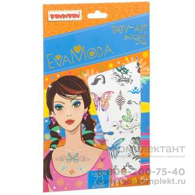 Набор переводных тату Eva Moda Райский сад 73 шт., арт. ВВ1826 Наш набор предлагает большой выбор детских переводных тату разных видов и размеров, объединённых одной темой, которую Вы можете увидеть в названии нашего набора. Работать с набором легко, Вам понадобиться лишь выбрать рисунок и приготовить влажную ткань. Это всё, что потребуется для нанесения тату.