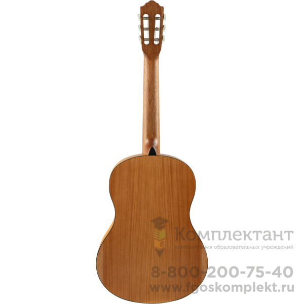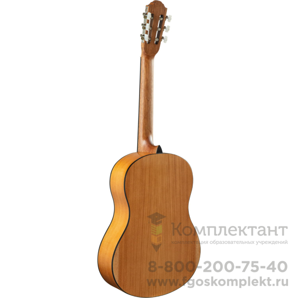 Верхняя дека изготовлена из ели, что обеспечивает чистое звучание, так необходимое для грамотного развития слуха. Нижняя дека и обечайки из красного дерева, благодаря чему звук приобретает мягкость и глубину. Надежная колковая механика обеспечивает мягкий и точный ход колков, легкость при настройке, а главное - хорошо держит строй.