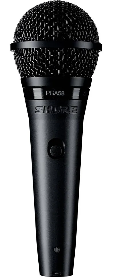 SHURE PGA58-XLR-E - это кардиоидный вокальный микрофон c выключателем. Микрофон комплектуется кабелем с разьемами XLR-XLR. Вокальный микрофон PGA58-XLR-E от компании Shure (США) создан для озвучивания вокала и музыкальных инструментов. Кроме этого, микрофон можно использовать на небольших концертных площадках и в project-студиях. Диаграмма направленности микрофона кардиоидная, благодаря чему он прекрасно снимает сигнал, при этом эффективно подавляя посторонние шумы с тыльной стороны капсюля.