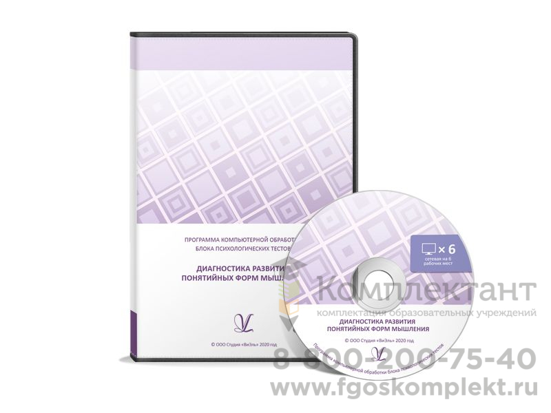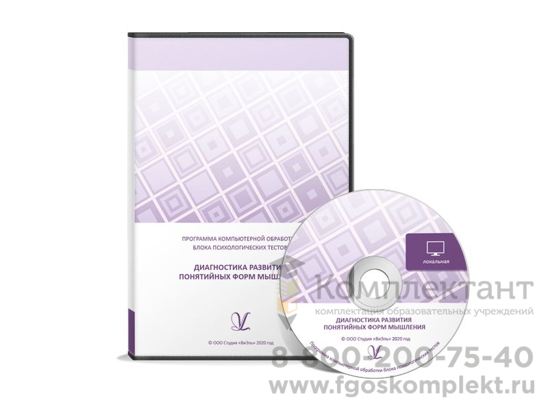 Комплект:СD с программой тестирования и обработки результатов; руководство пользователя.