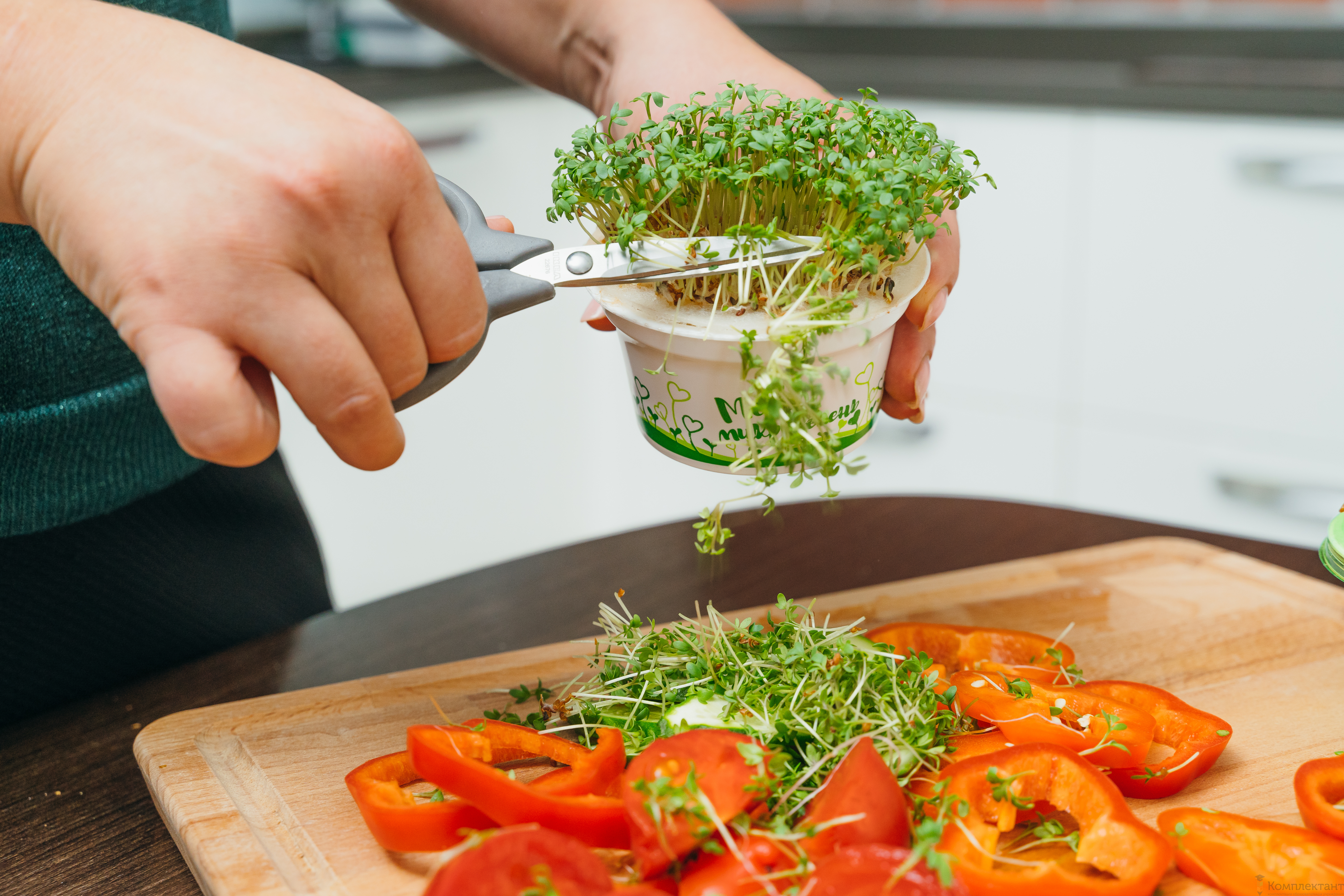 Микрозелень содержит в десятки раз больше полезных веществ чем взрослое растение, поэтому достаточно ежедневно употреблять небольшое количества микрозелени, чтобы восполнить запасы витаминов. Кроме того, микрозелень широко используется в кулинарии, в качестве украшения блюд.