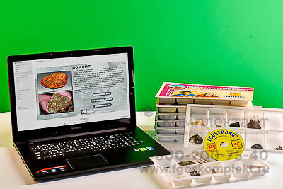 Натуральные образцы пронумерованы и разложены в коробки с ячейками.