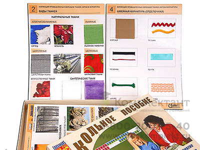 В коллекции представлены: классификация сырья для производства тканей, образцы натуральных и химических тканей, нитки различного назначения и швейная фурнитура.