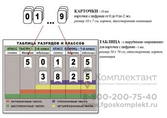 Комплект "Разряды и классы чисел" (1табл.+карточки с цифрами для крепления к таблице от 0 до 9 по 2 экз.)
