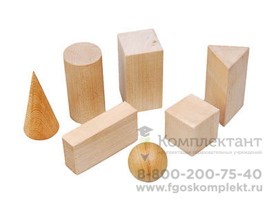 Комплектность: прямоугольный параллелепипед – 1 шт., прямой параллелепипед (правильная призма) – 1 шт., конус – 1 шт., шар – 1 шт., куб – 1 шт., треугольная призма – 1 шт., цилиндр – 1 шт., руководство по эксплуатации – 1 шт.