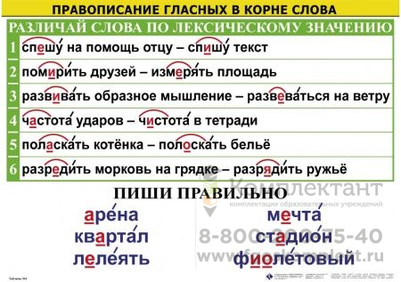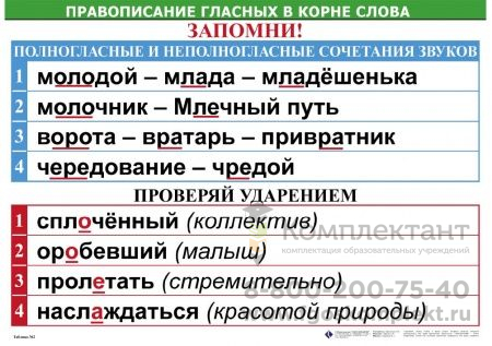 Правописание гласных в корне слова (5табл+32 карт) для начальной школы 50х70 см