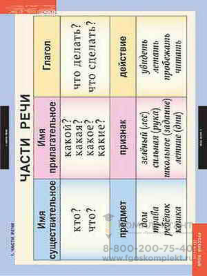 Учебный альбом из 4 листов (формат 68*98 см): 1. Части речи. 2. Разделительный Ь знак. 3. Разбор слова по составу. 4. Однокоренные слова и форма слова.