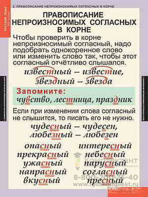 Учебный альбом из 9 листов (формат 68*98 см): 1. Мягкий знак после шипящих. 2. Правописание непроизносимых согласных в корне. 3. Род и число имен существительных. 4. Род имен прилагательных. 5. Число имен прилагательных. 6. Правописание окончаний имен прилагательных. 7. Правописание НЕ с глаголами. 8. Части речи. 9. Разделительный Ъ знак.