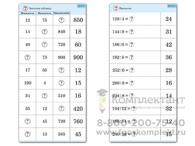 Комплект карточек (10) Умножение и деление в два шага