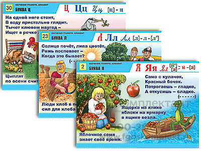Комплект таблиц для нач. шк. Обучение грамоте. Алфавит в загадках, пословицах (32 таб., А1, лам.)