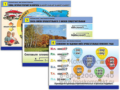 Комплект таблиц для нач. шк. Русский язык. Имя прилагательное (12 табл., формат А1, лам.)