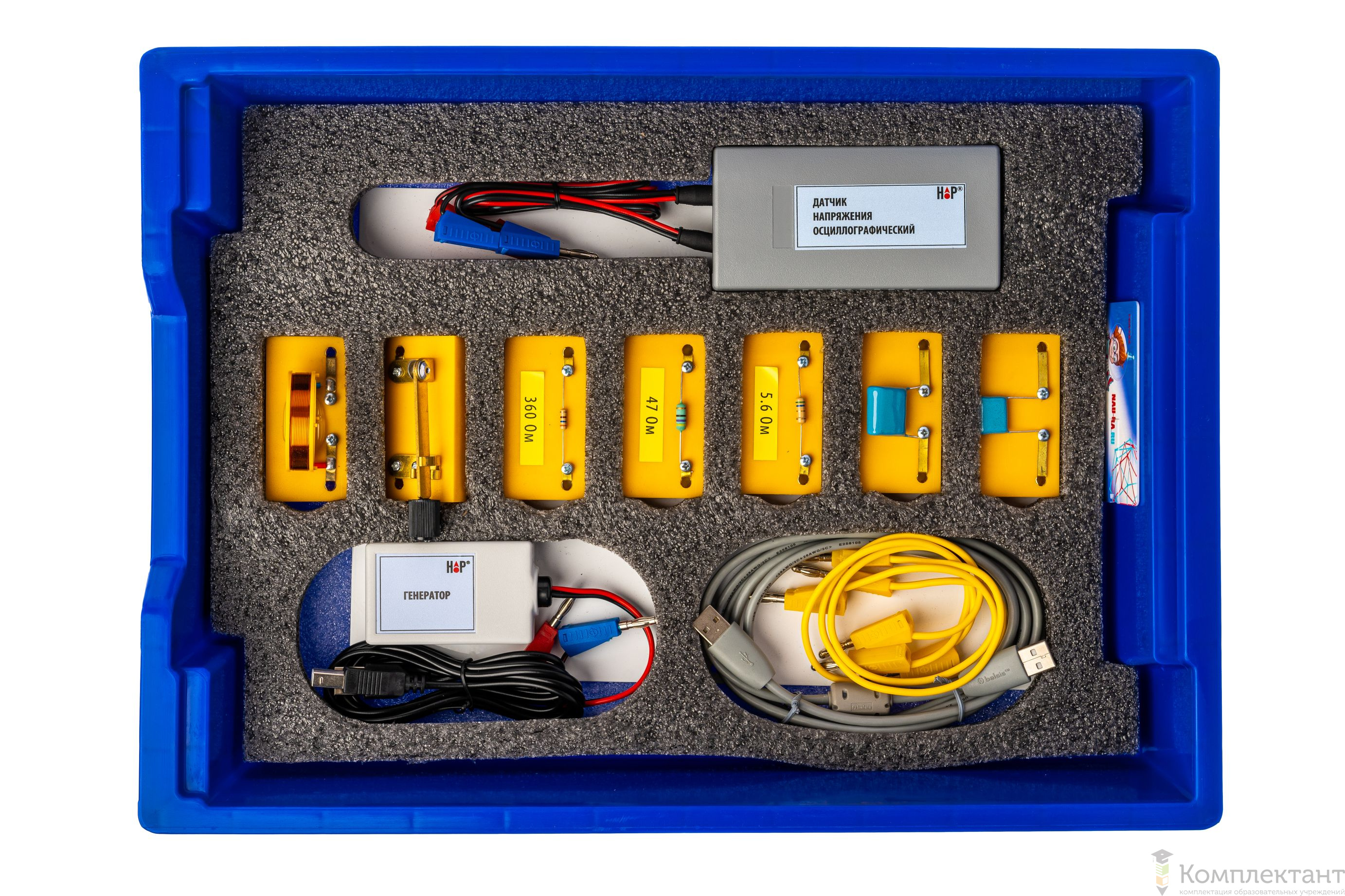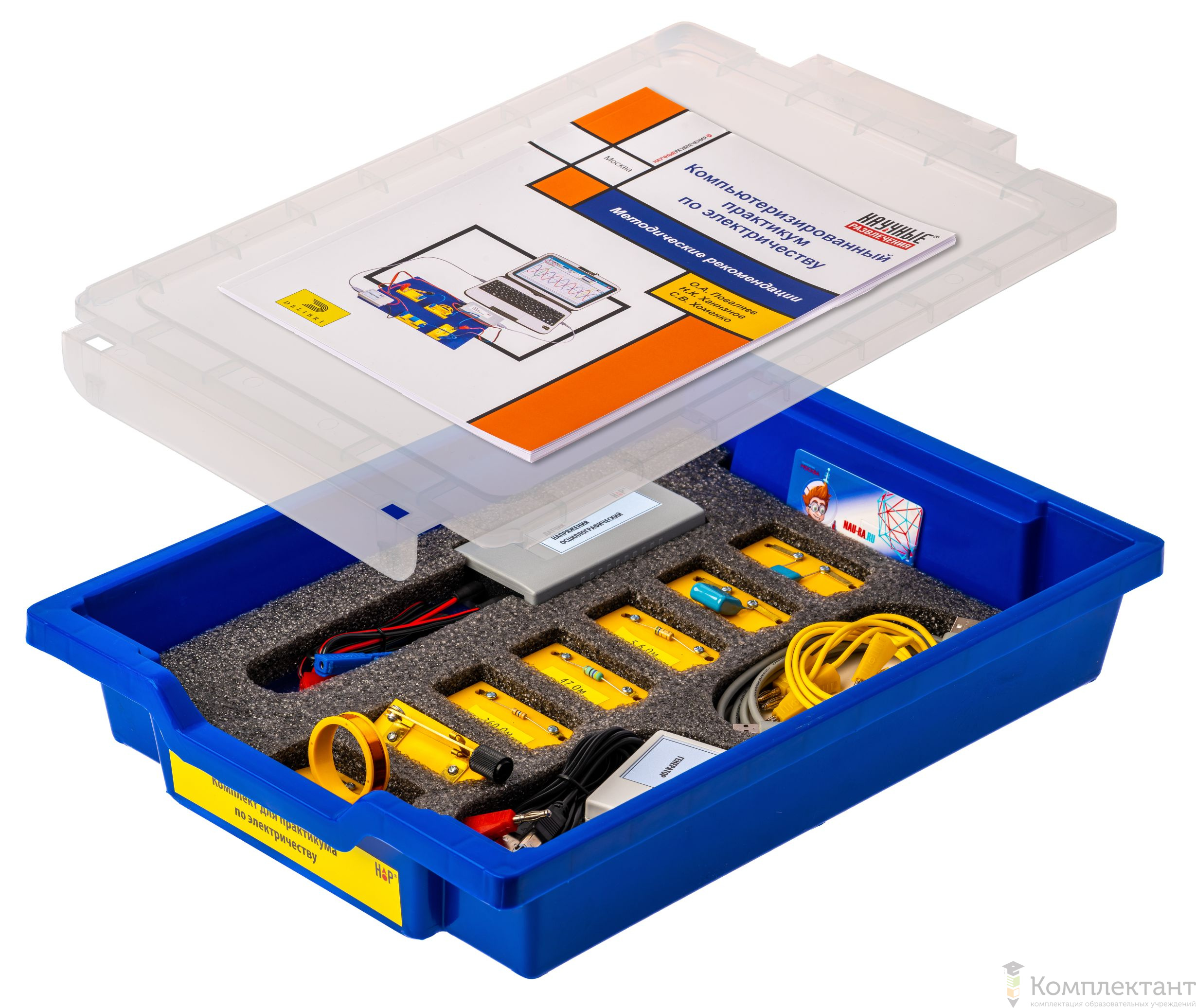 Комплект сопровождается методическим руководством на русском языке, которое содержит рекомендации по проведению 4-х экспериментальных работ, посвященные изучению нестационарных процессов в электрических цепях.
