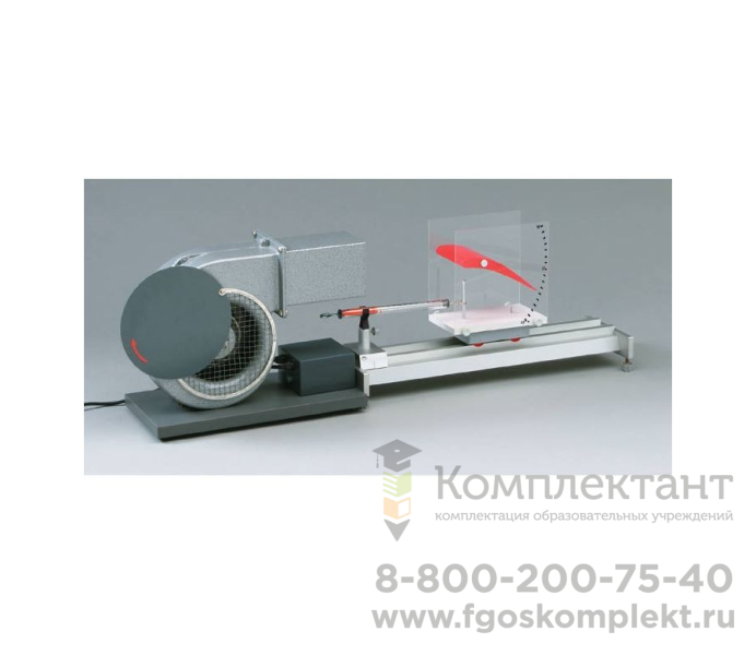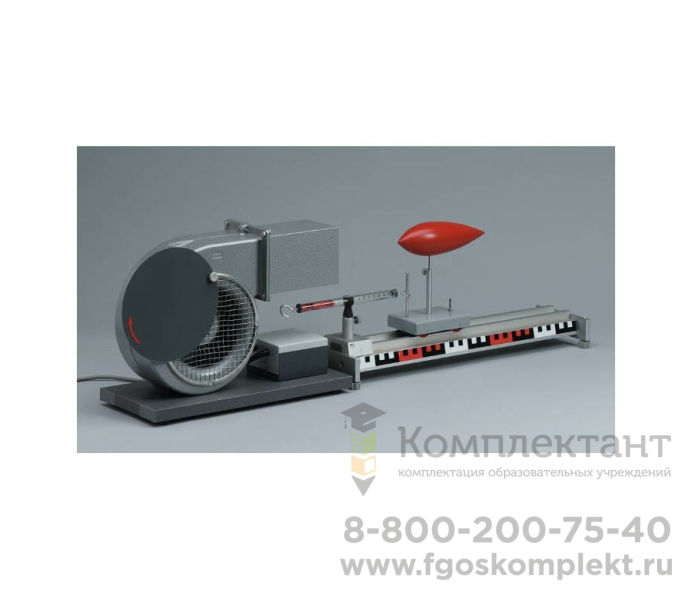 В комплекте (для 1 рабочей группы или для демонстраций)*: рельсовый профиль с опорами, ползунами и штативом, трубка Пито, трубка Вентури, крыльчатка с опорой, гребенка, модель подъемной силы с аэродинамическим профилем и весами, модель аэродинамического профиля с зондом для измерения давления, модель ракеты, динамометр, манометр с наклонной трубкой, красильный аппарат, набор тел с различным аэродинамическим сопротивлением на шасси, воздушные шары, аксессуары.