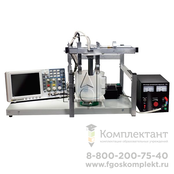 Лабораторная установка смонтирована в виде настольного металлического стенда и включает в себя сборку акустического резонатора с излучателем и приемником звука, резервуар для жидкости, генератор с блоком питания и осциллограф. Конструкция установки обеспечивает контролируемое изменение длины акустического резонатора и поддержание температуры в объеме резонатора на заданном уровне. Питание излучателя осуществляется от генератора синусоидального сигнала. В состав установки входит цифровой двухканальный запоминающий осциллограф с функциями вывода на экран амплитуды сигналов и частоты в цифровом виде.