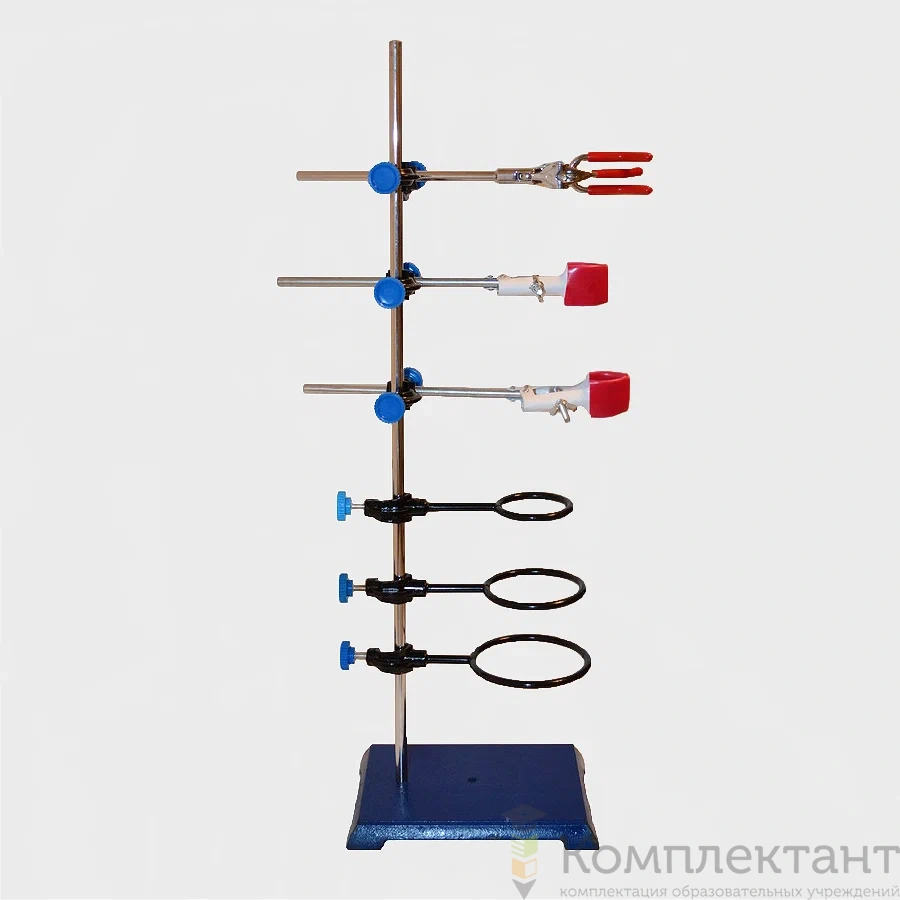 Зажим надёжно фиксирует составляющие между собой, тем самым минимизируя риск падения лабораторной посуды из штатива.