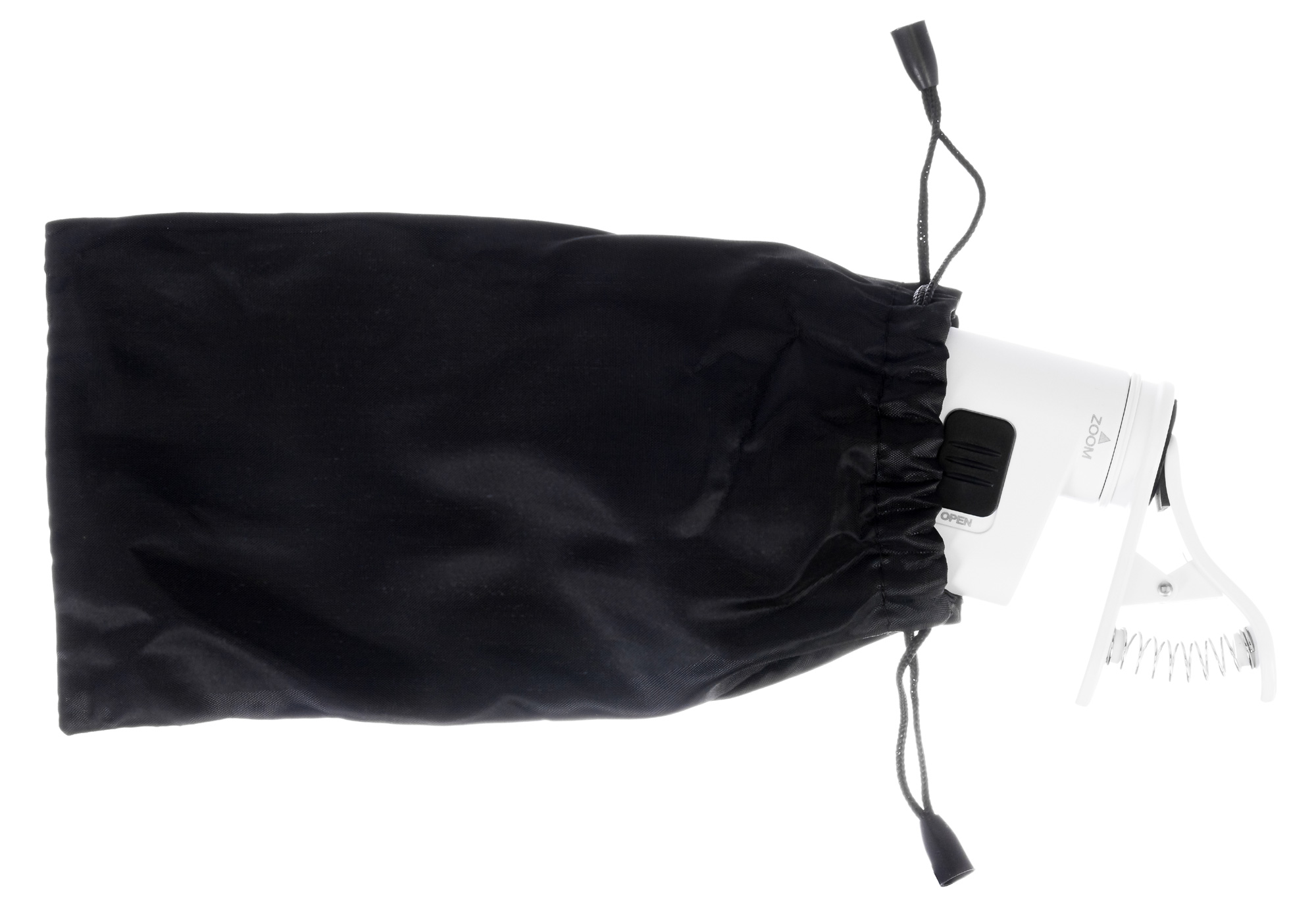 Модель Levenhuk Zeno Cash ZC16 снабжена зажимом для установки на мобильные устройства. Это позволяет использовать камеру смартфона или планшета для фото- и видеосъемки с увеличением. Картинка выводится прямо на экран телефона. Для работы при недостаточном освещении в конструкции микроскопа предусмотрена подсветка – яркий светодиод. Для его работы требуются батарейки (не входят в комплект). Для настройки резкости используется барабан грубой фокусировки.