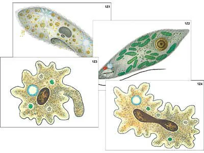 Комплектность: карточка "Инфузория туфелька" – 1 шт., карточка "Эвглена зеленая" – 1 шт., карточка "Амеба обыкновенная" – 1 шт., карточка "Начало деления амебы" – 1 шт., карточка "Окончание деления амебы" – 1 шт., карточка "Две разделившихся амебы" – 1 шт., карточка "Выход амебы из цисты" – 1 шт., карточка "Амеба дизентерийная" – 1 шт., магниты – 4 шт., руководство по эксплуатации – 1 шт.