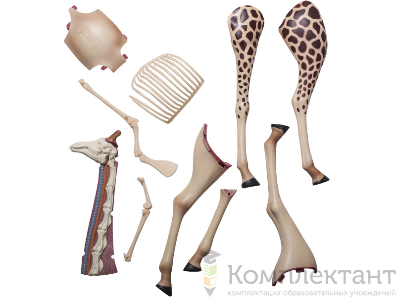 Конструкция модели продумана для максимального удобства использования в учебном процессе. Одна из сторон модели выполнена из прозрачного пластика, что позволяет рассмотреть внутреннее строение организма без разборки . Все 27 деталей являются полностью съемными, что дает возможность изучать каждый орган или часть тела по отдельности . Модель отличается высокой детализацией: каждая часть анатомически точна и тщательно проработана, а многие элементы вручную раскрашены для достижения максимальной реалистичности . Для удобства демонстрации и хранения в комплект входит прочная подставка и иллюстрированное руководство по сборке, которое также содержит описание анатомии, интересные факты о жизненном цикле жирафа, его питании и размерах .