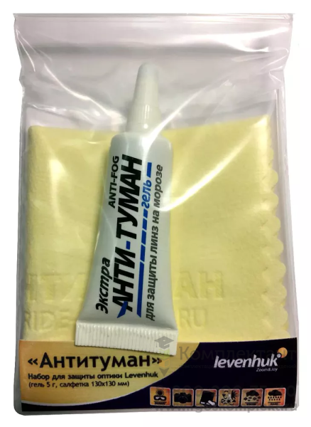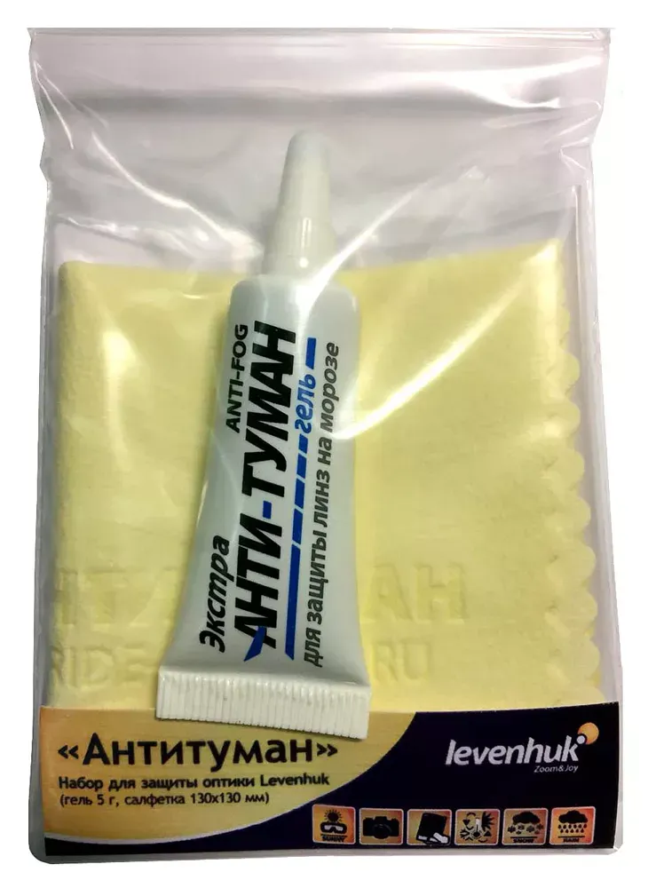 Набор Levenhuk «Антитуман» предназначен для защиты оптики от запотевания. В комплект входит специальный гель и салфетка. Набор прекрасно подходит для ухода за очками и оптическими приборами, в том числе с многослойным просветляющим покрытием.