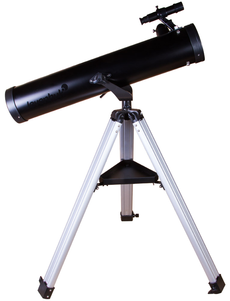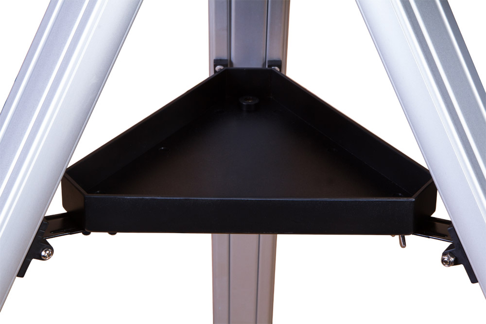 Устойчивость телескопу придает классическая алюминиевая тренога. Она легкая, прочная и надежная. Устанавливать ее можно даже на неровные поверхности – каждая ее ножка регулируется по высоте независимо от других. Есть лоток для аксессуаров, на котором можно размещать окуляры, компас, карты звездного неба и другие небольшие предметы. Два окуляра уже включены в комплект поставки. С одним телескоп дает небольшое увеличение (35х), с другим – значительное (175х).