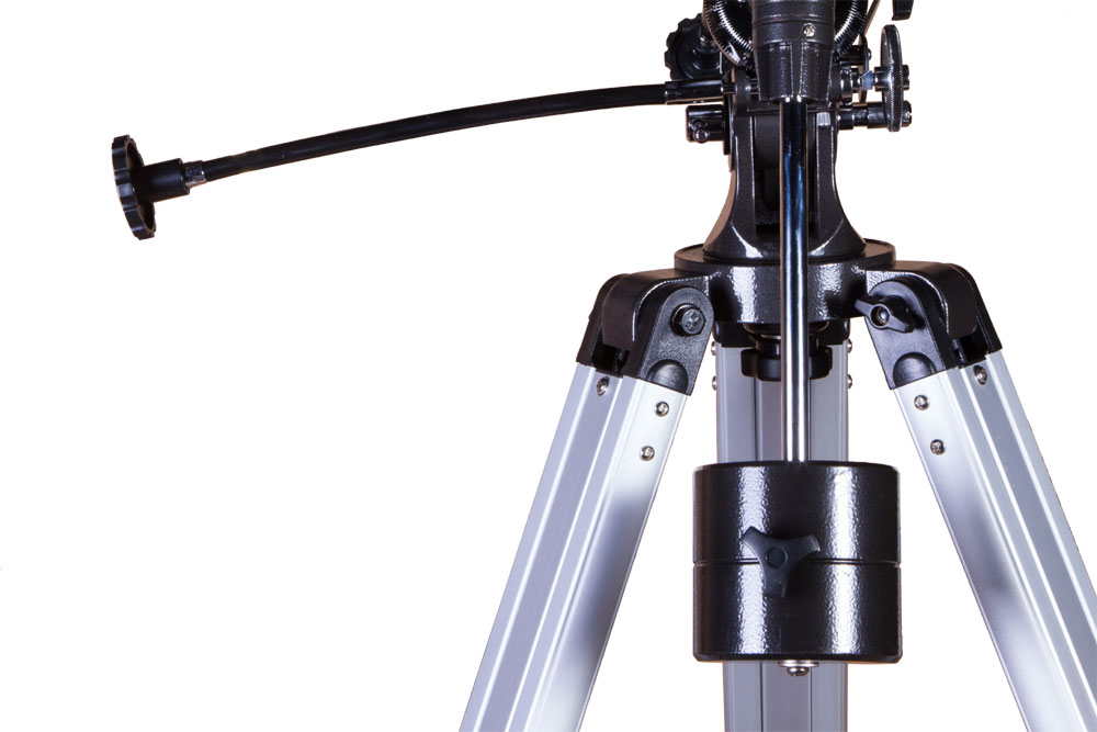 Оптическая труба установлена на экваториальную монтировку, которая управляется при помощи ручек тонких движений. Этот тип монтировки требует времени на освоение, но отлично подходит для длительного изучения ночного неба. Так как космические объекты постоянно движутся по небосклону, положение телескопа нужно часто корректировать. Экваториальная монтировка многократно облегчает этот процесс.