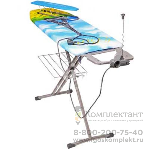 обладает прочной и надежной конструкцией. Прорезиненные наконечники на ножках придают доске устойчивость и защищают пол от царапания. Доска легко складывается для компактного хранения, не занимает много места. Регулируемая высота позволяет подстроить доску под ваш рост. Максимальная высота – 90 см.Подставка для утюга EURO оснащена термостойкими силиконовыми вставками и предназначена специально для утюгов с тефлоновым покрытием. Вставки не дают утюгу скользить и защищают его от царапин. Встроенный электроудлинитель с розеткой придает дополнительное удобство работы. Кронштейн для сетевого шнура предотвратит его запутывание и перекручивание. Специальный чехол изготовлен из ткани с металлизированным покрытием и тефлоновым напылением. С его помощью достигается эффект двустороннего глажения. Теперь вам не надо будет переворачивать вещи, достаточно прогладить их только с одной стороны. Чехол не пригорает под утюгом, предотвращает прилипание синтетических тканей.