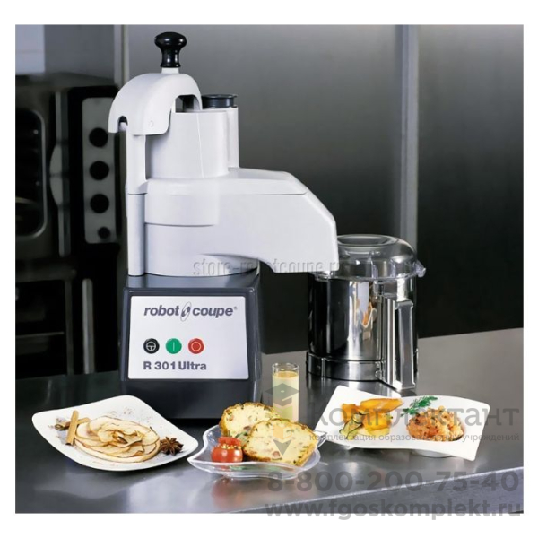 - Универсальность. Процессор кухонный Robot Coupe R301 Ultra может выполнять несколько задач одновременно и заменять овощерезку и куттер. Благодаря компактным габаритам, он не займет много места на столе.