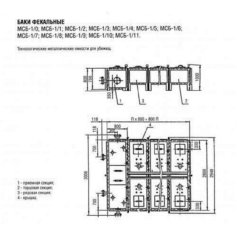 Баки предназначены для приема стоков от санитарных приборов и санузлов, оборудованных унитазами тарельчатого типа с низкорасположенным бачком. Индекс МСБ-1 означает – металлический секционный бак, 1- порядковый номер модификации.