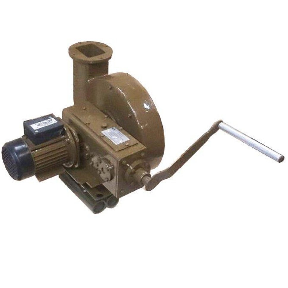 Электроручной вентилятор ЭРВ-49 состоит из следующих основных узлов: корпуса, станины, электродвигателя, редуктора. Соединение всасывающего и напорных патрубков вентиляторов с воздуховодами производится на фланцах. При работе вентиляторов от электропривода редуктор отключается от вала рабочего колеса автоматически муфтой переключения.