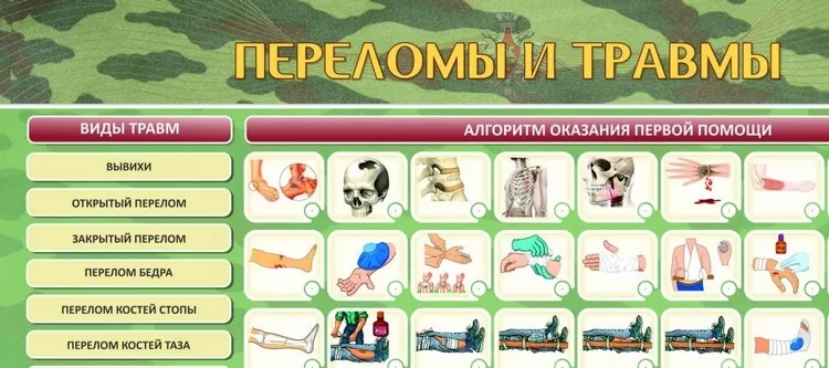 Комплект стендов-планшетов электрифицированных "Оказание первой помощи при травмах и переломах, кровотечении и ранах, ожогах и обморожениях" (3 шт.) для курсантов военных образовательных учреждений