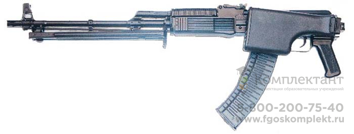Макет массогабаритный ручного пулемета РПК74М предназначен для использования в качестве сувенира, сценического имущества, выставочного образца - имитатора, технологического образца - имитатора, учебного пособия.