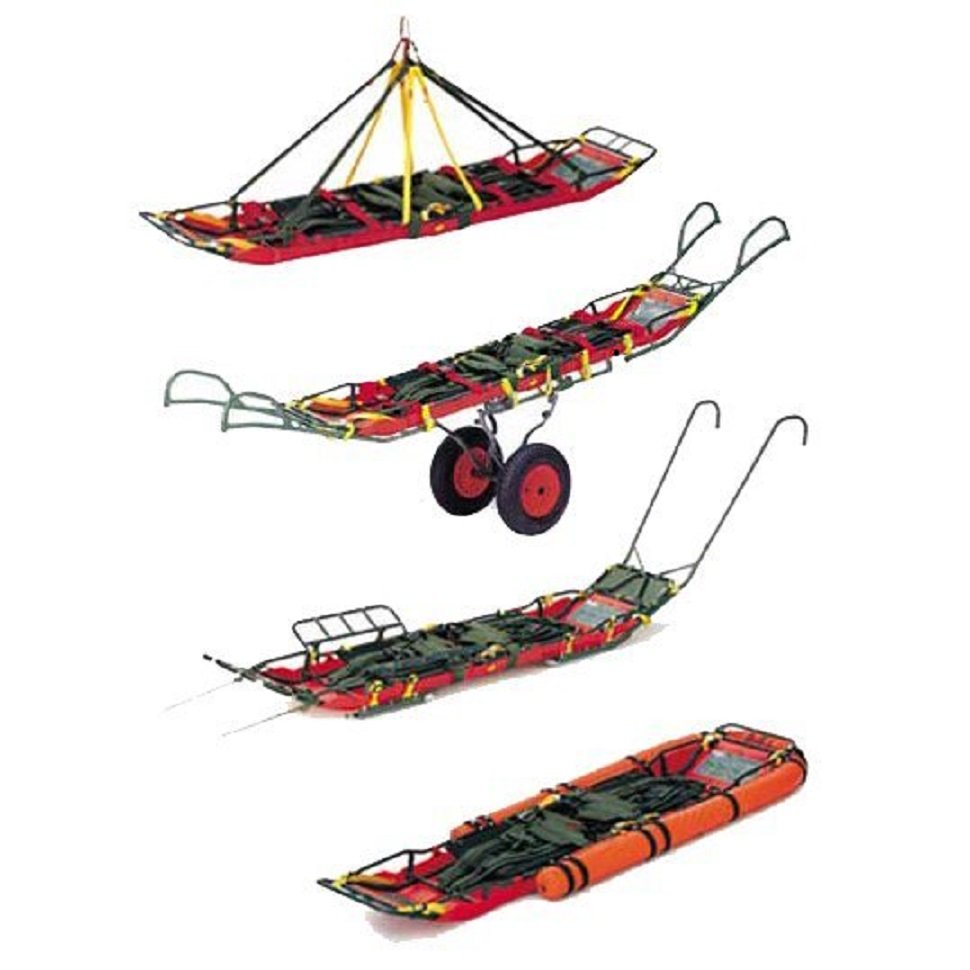 Лучшие носилки для эвакуации пострадавшего. Достаточно сказать, что они стоят на вооружении войск НАТО. Носилки разделяются на две половинки, каждая из которых является основой для станкового рюкзака. Применимы для эвакуации с использованием вертолёта и методами верёвочной техники.
