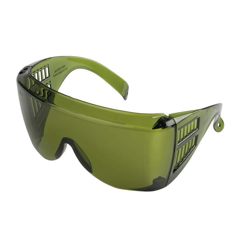 Очки с расширенным панорамным обзором для защиты от высокоскоростных летящих частиц с низким уровнем кинетической энергии и УФ-излучения. Имеют увеличенную боковую и верхнюю защиту. Очки имеют дужки анатомической формы с вентиляционными прорезями. Желтая линза предназначена для работы в условиях недостаточной освещенности (пыль, туман), увеличивает контрастность изображения, не искажая его.