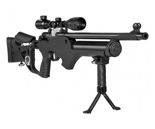 Общий вес винтовки 4,62 кг, длина - 104 см. Оружие поставляется с тремя магазинами, заправочным штуцером, ключом, ремнем, а также набором уплотнителей и паспортом. Упаковка - удобный для переноски кейс.