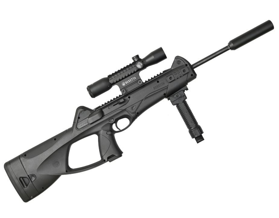 Umarex Beretta Cx4 Storm оборудована прицельным приспособлением с фибергласовыми нитями и специальным креплением для размещения оптики. Кроме того, имеется дополнительная подствольная планка Вивера (22-миллиметровая) для размещения различного рода прицелов (коллиматорного, оптического) или тактического фонаря. Большим достоинством винтовки Umarex Beretta Cx4 Storm является емкость магазина, который рассчитан на 30 пуль типа Диаболо, что позволяет не перезаряжать ее после каждого выстрела. Модель оборудована неавтоматическим предохранителем, а также регулируемым спуском. Винтовка поставляется в качественном пластиковом кейсе (+ прицел 4x32, модератор)