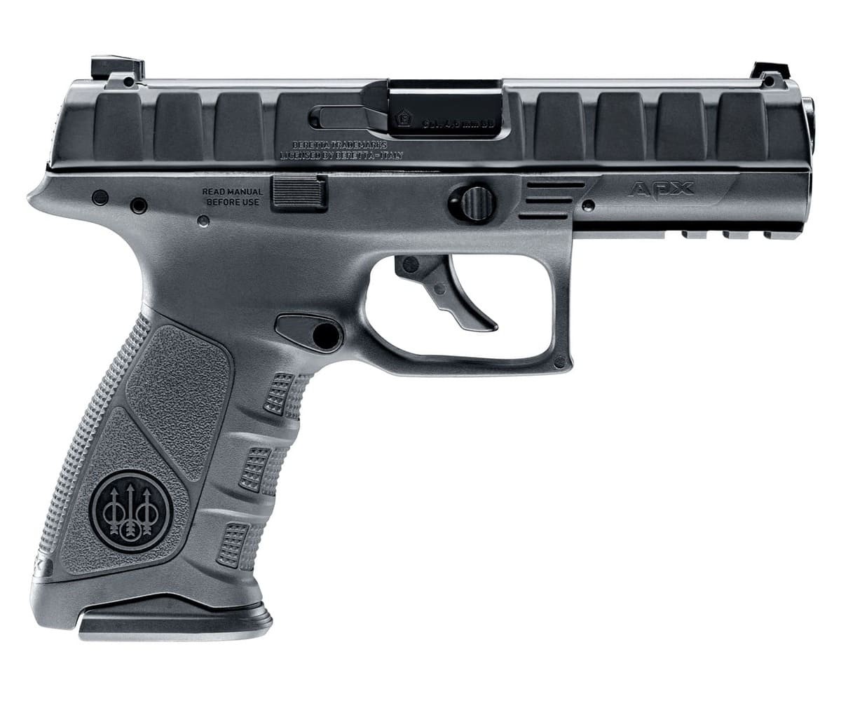 Пневматический пистолет Umarex Beretta APX - это газобаллонная модель от проверенного германского бренда, копия известного итальянского пистолета. Эта модификация функционирует от баллончика с углекислотой, устанавливаемого под крышку рукоятки.