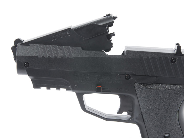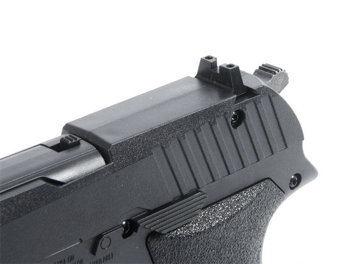 Под стволом пистолета имеются тактические салазки (планка Пикатинни) для установки лазерного целеуказателя или тактического фонаря.
