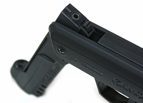 В данной модели пистолета Gamo достаточно широко применяется оружейный пластик - он не только полностью покрывает ствол, УСМ, а также цилиндр модели, но и даже используется при изготовлении действующего механизма пистолета (из пластика изготовлены цилиндр и поршень P-900). Но это не сказывается на прочности пистолета, при этом замена некоторых деталей на пластиковые заметно снижает общий вес оружия (масса пистолета составляет всего пятьсот шестьдесят граммов).