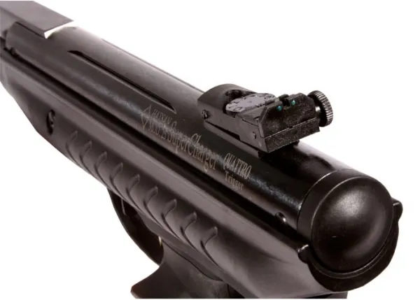 На ствольной коробке пневматического пистолета Hatsan MOD 25 Supercharger выфрезерован "ласточкин хвост", что позволяет устанавливать стандартные крепления для оптического прицела.