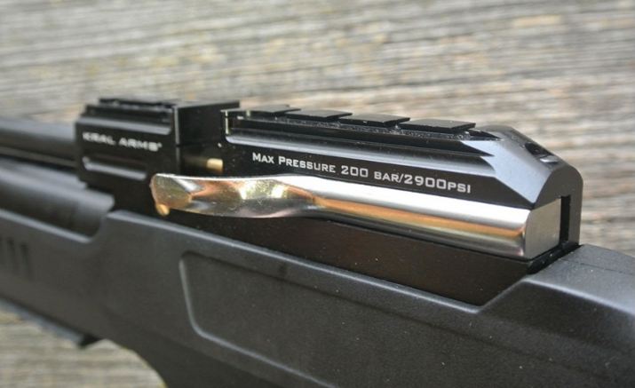 Резервуар для воздуха располагается непосредственно под стволом. Его объём составляет 105 куб.см, а выдерживает он давление до 200 бар. Этого достаточно для комфортного отстрела 35-40 пуль. Начальная максимальная скорость пули достигает 228 м/с.