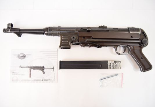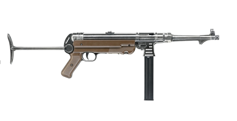 Легендарный немецкий пистолет-пулемет MP-40 (Шмайсер) в пневматическом исполнении. Великолепная детализация позволит вам прикоснуться к истории! Корпус MP-40 изготовлен из металла и имеет антуражную потертость корпуса, накладки темно коричнего цвета из пластика. Для питания используется 2 баллона СО2 12г, емкость магазина 50 шаров. Пистолет пулемет MP-40 имеет режим одиночной и автоматической стрельбы, затвор подвижный, а функция BlowBack позволит ощутить приятную отдачу от каждого выстрела! Приклад складной, прицельная планка регулируемая!