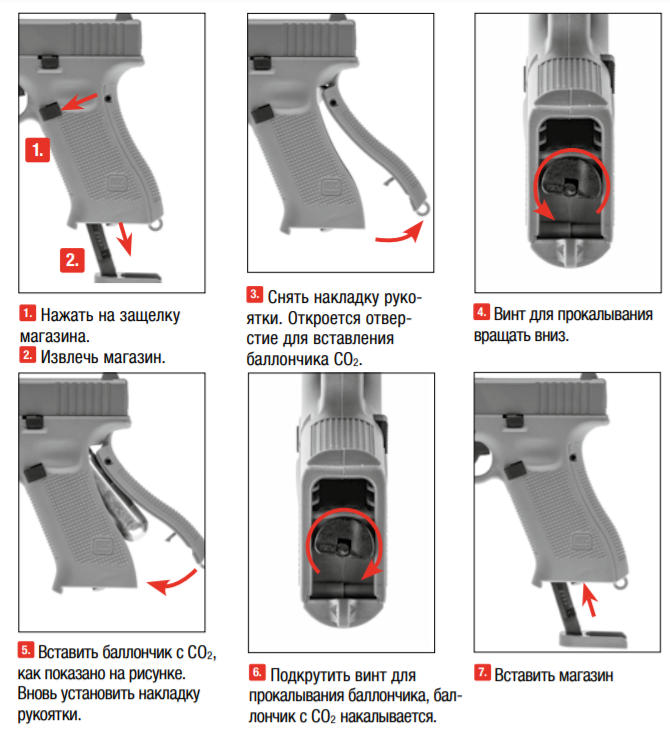 Предохранитель интегрирован в спусковой крючок, кнопка сброса затвора рабочая. Магазин пистолета Umarex Glock 19X, расчитан на 19 шариков