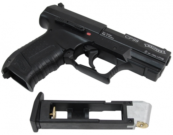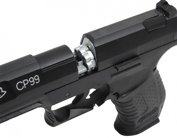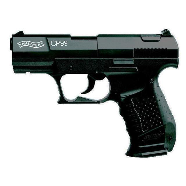 Пневматический пистолет Umarex Walther CP99 - практически точная копия боевого пистолета Walther P-99. Облегченный ударопрочный пластиковый корпус.