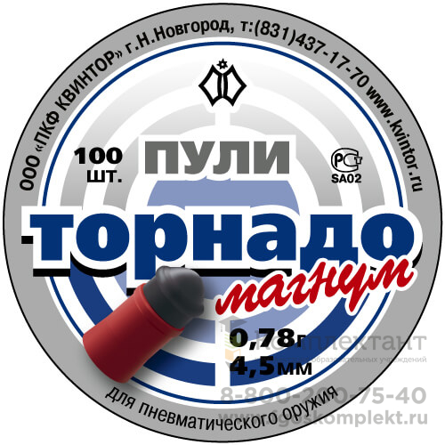 Пули пневм. Квинтор "Торнадо-Магнум", 0.78 г (100 шт)