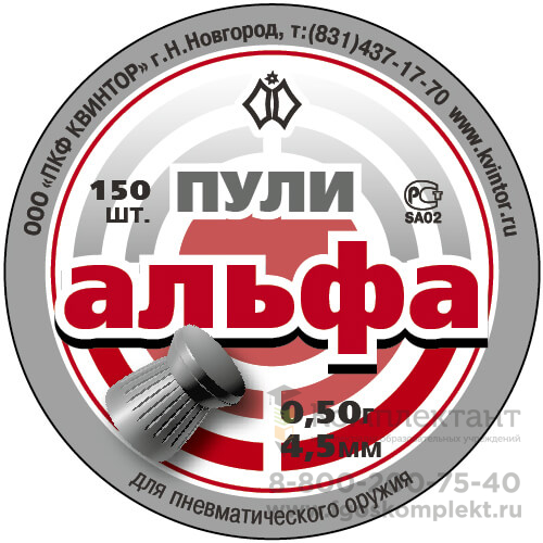 Пули пневматические Квинтор "Альфа", 0.50г (150 шт)