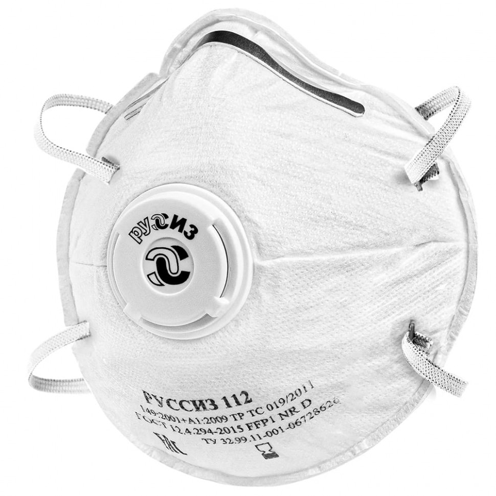 Респиратор РУССИЗ 112 FFP1 (с клапаном выдоха) для защиты от аэрозолей до 4 ПДК.