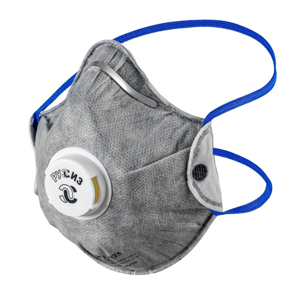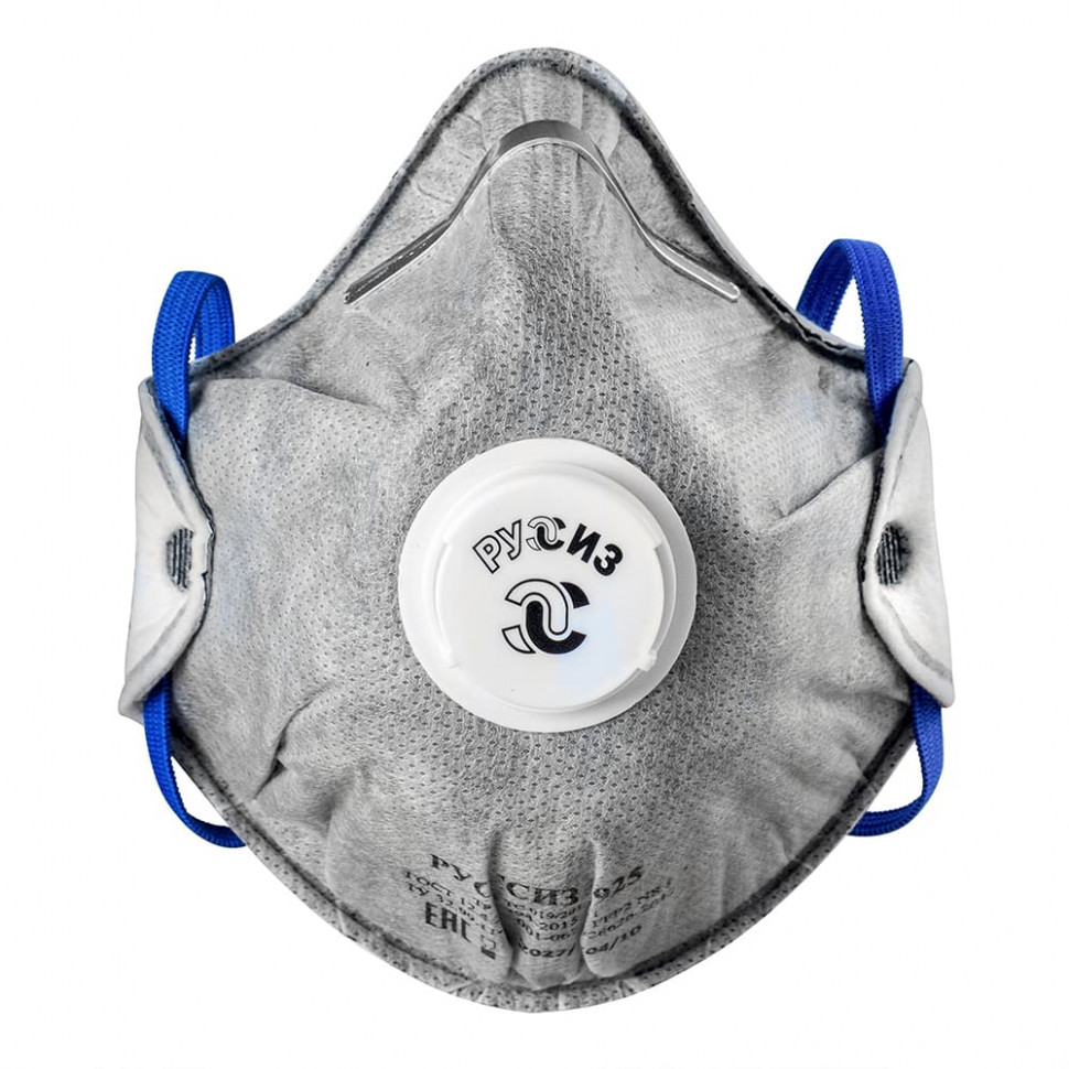 Респиратор РУССИЗ 925 FFP2 с клапаном выдоха для защиты от аэрозолей с дополнительным угольным слоем и регулировкой до 12 ПДК.