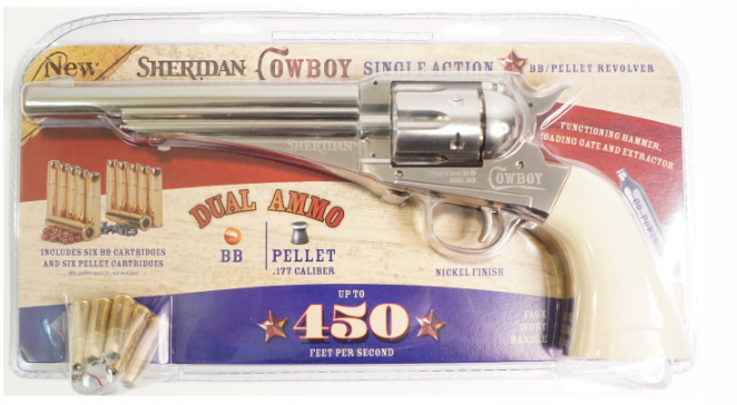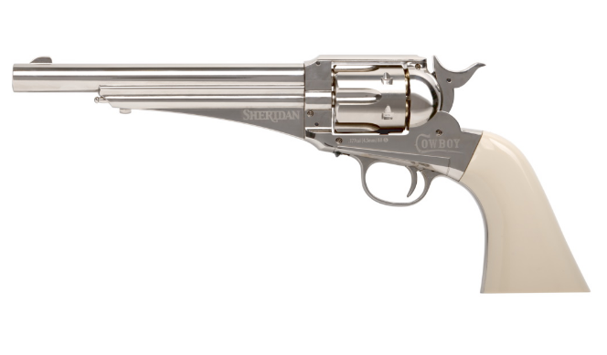 Пневматический револьвер Crosman Sheridan Cowboy - это реалистичная копия оригинального револьвера Remington 1875 года.